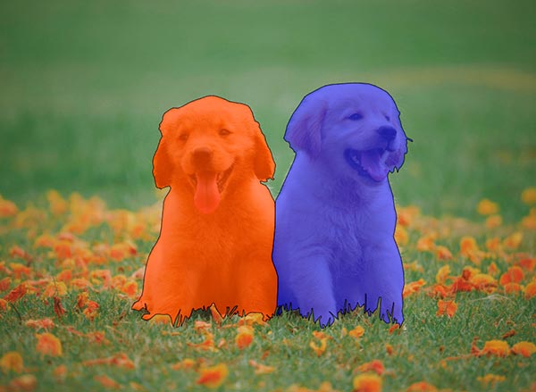 Instance segmentation just works by detecting objects first, then applying a semantic segmentation model inside every rectangle. These rectangles are referred to as bounding boxes. A semantic segmentation method, for example, identifies the colors of the dogs in an image; the instance segmentation method facilitates the identification of individual dogs in an image.